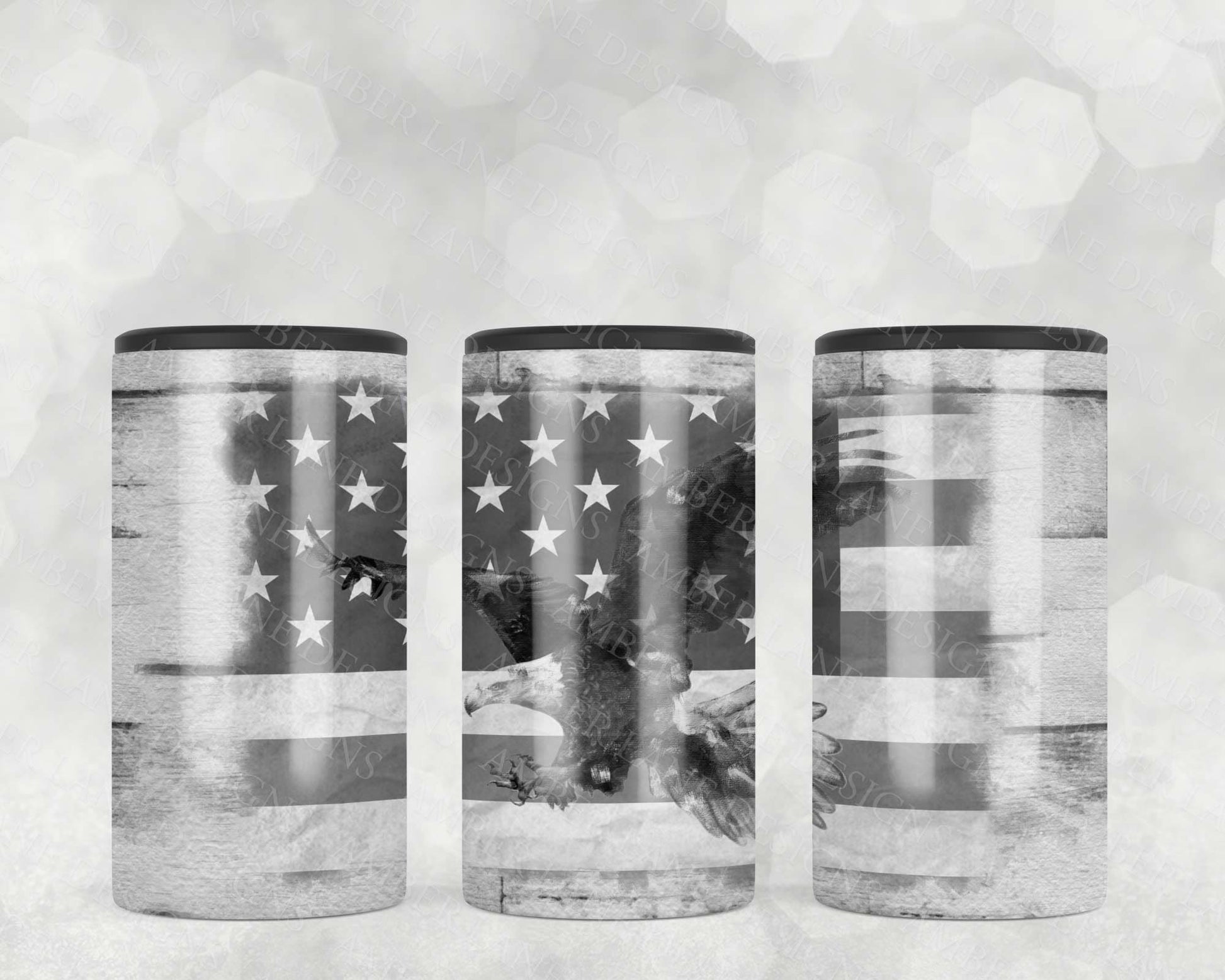 Eagle USA Flag in Back and White 4in1 Can Cooler Sublimation Wrap 1 jpeg file