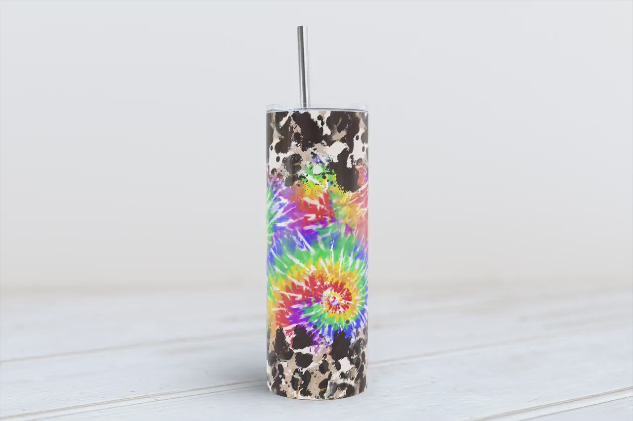 Tie Dye Cowhide and Leopard 20oz SKINNY TUMBLER straight wrap 1 jpeg file